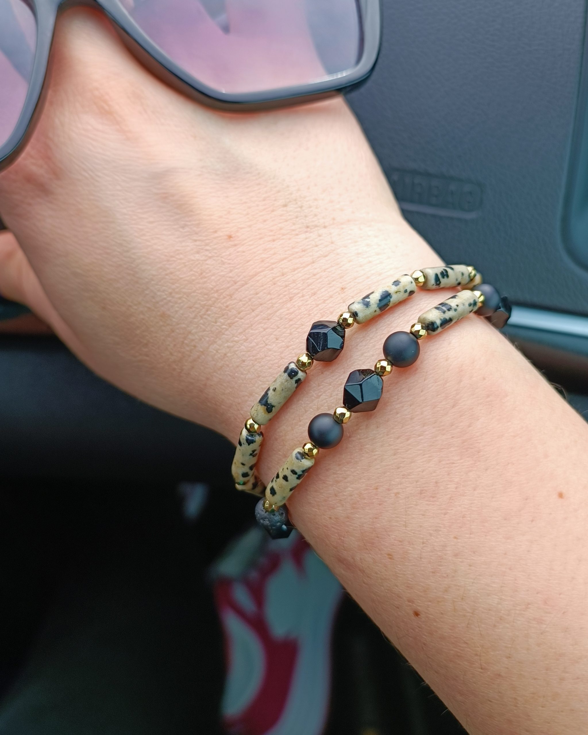 Bransoletka Jaspis dalmatyński z Lawą wulkaniczną i Onyksem