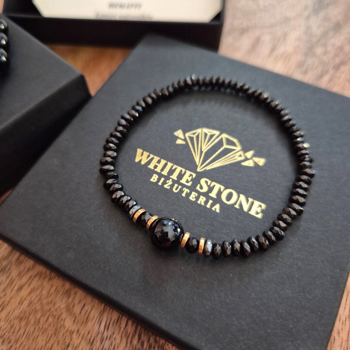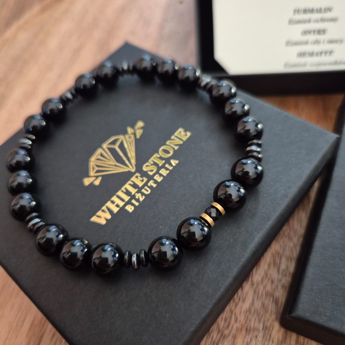 ✔️ Naturalne kamienie – starannie dobrane onyks i turmalin o głębokiej, eleganckiej kolorystyce