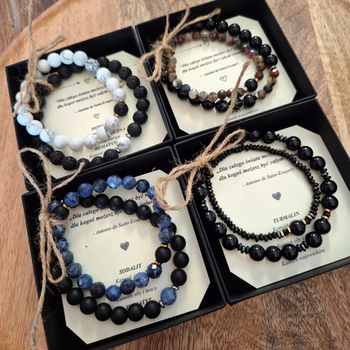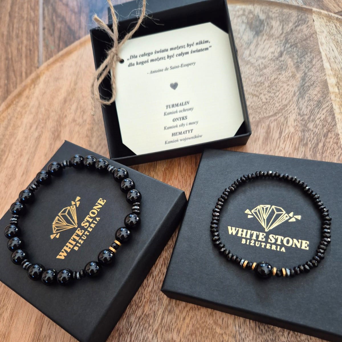 Te wyjątkowe partnerskie bransoletki dla par, wykonane z naturalnego onyksu i turmalinu, to symbol siły, ochrony i wzajemnego wsparcia.