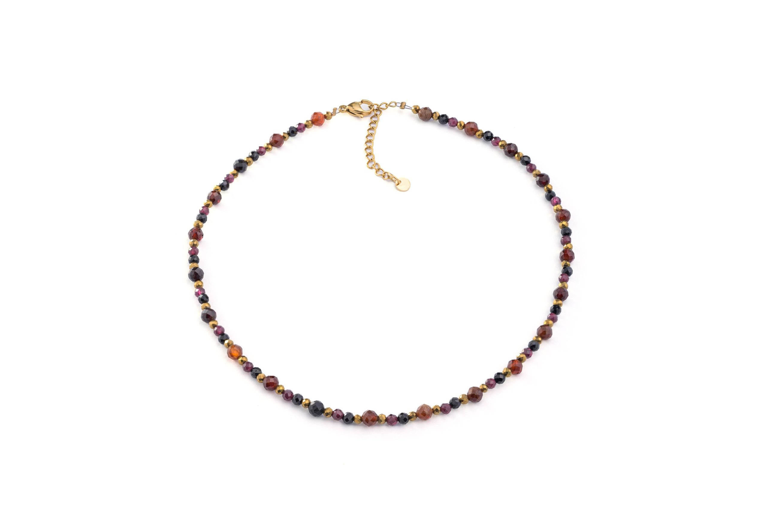 Elegancki naszyjnik stworzony z wielu wielkości kamienia Granatu i Spinela.